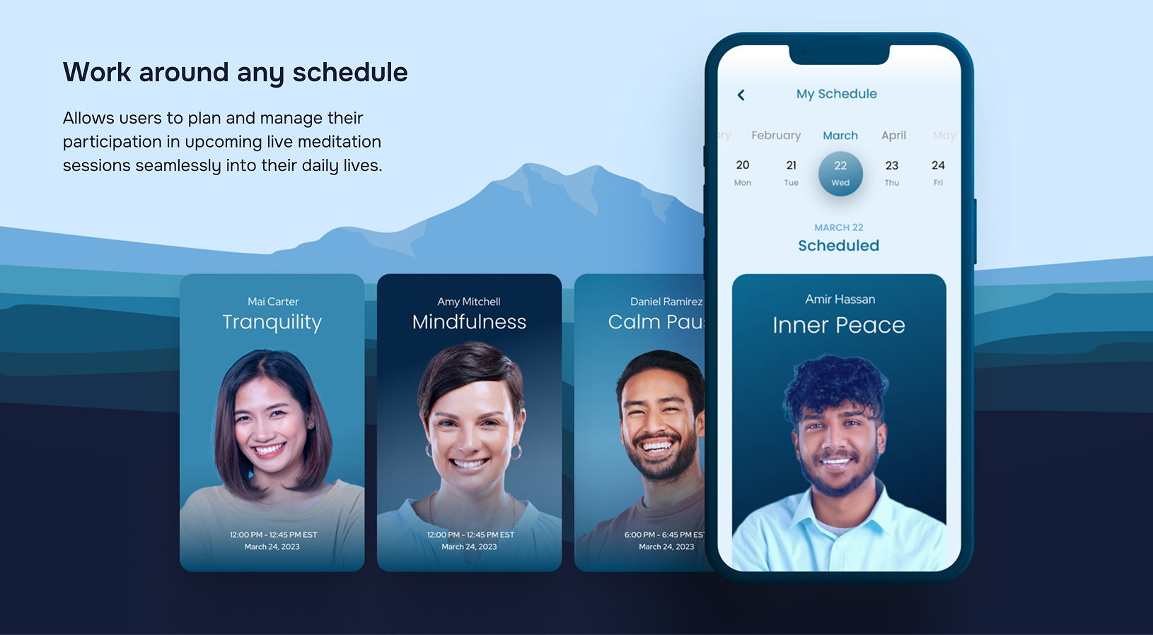 We reimagined the Calm App with new features and a modern meditative design with the goal to make wellness more approachable and personal. Mental health and wellbeing take a spotlight during our stressful current events, where doomscrolling and devastating news takes a toll. From conception to development, we utilized Design Thinking and UX methodologies, and prioritized human centered design.